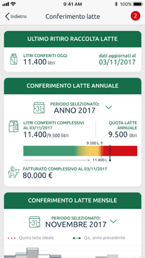 - check your situation in real time (liters of milk delivered, divided between cows and goats