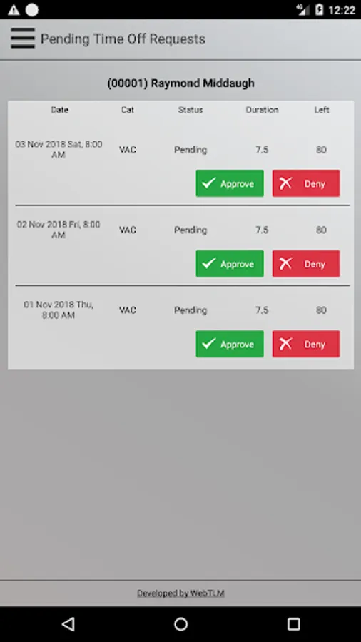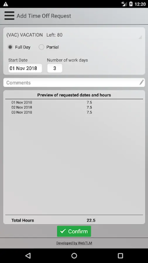 Note: Webtlm mobile application is not intended for standalone use. You should have account with Time Attendance online solution provider to be able to use it.