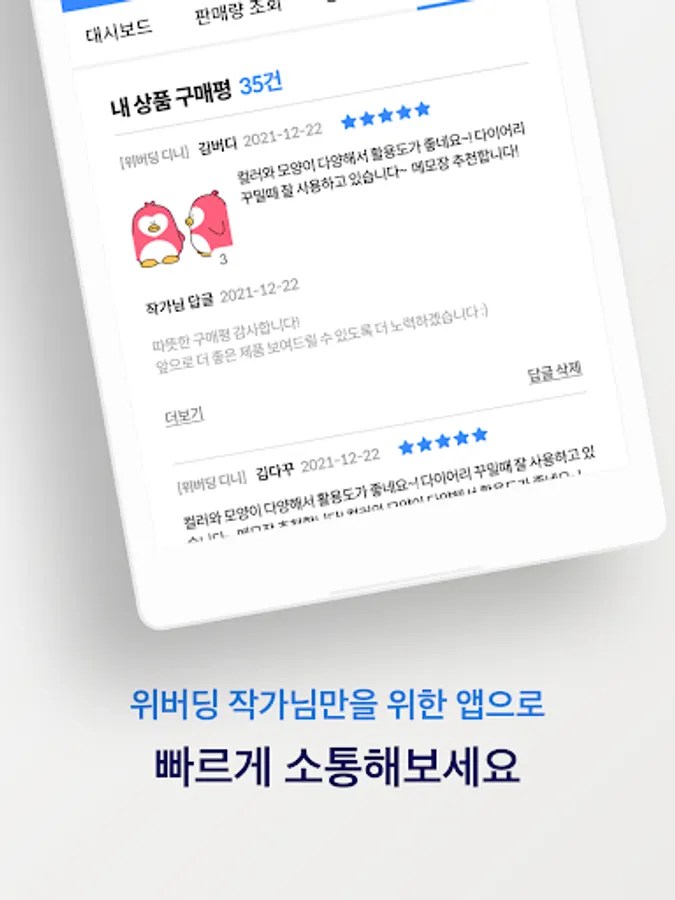 - Authors leave replies to purchase reviews and inquiries left by users.