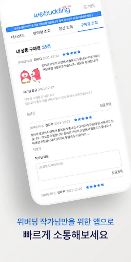 * If you access seller.webudding.com on your desktop, you can use all the features of Webudding Seller Admin!