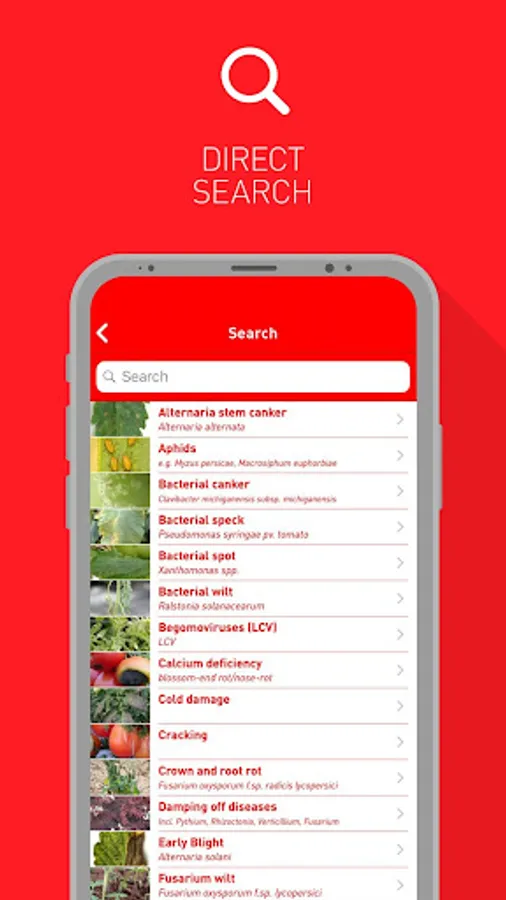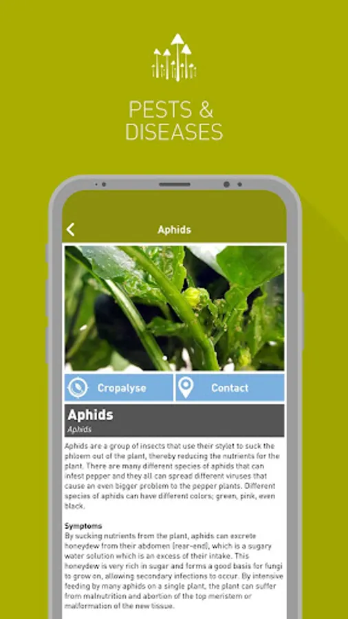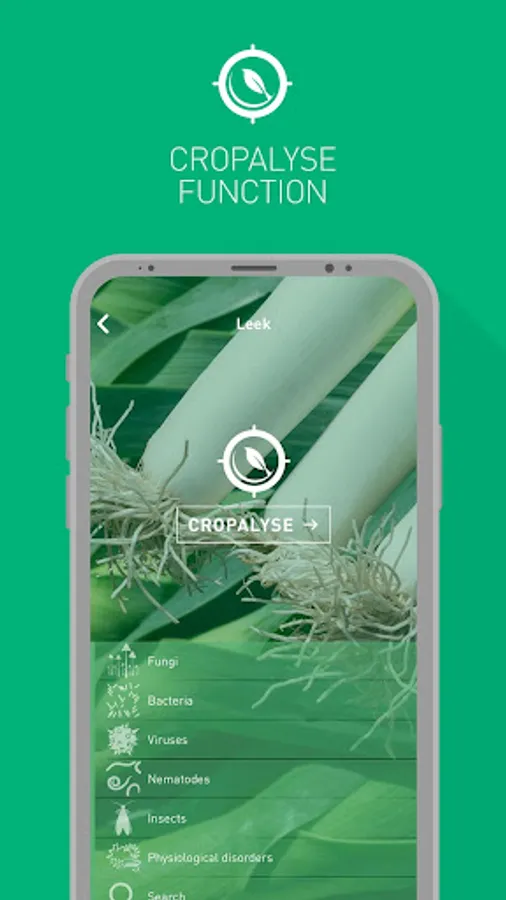 - Helps identify the pest or disease by following a simple search function “Cropalyse”