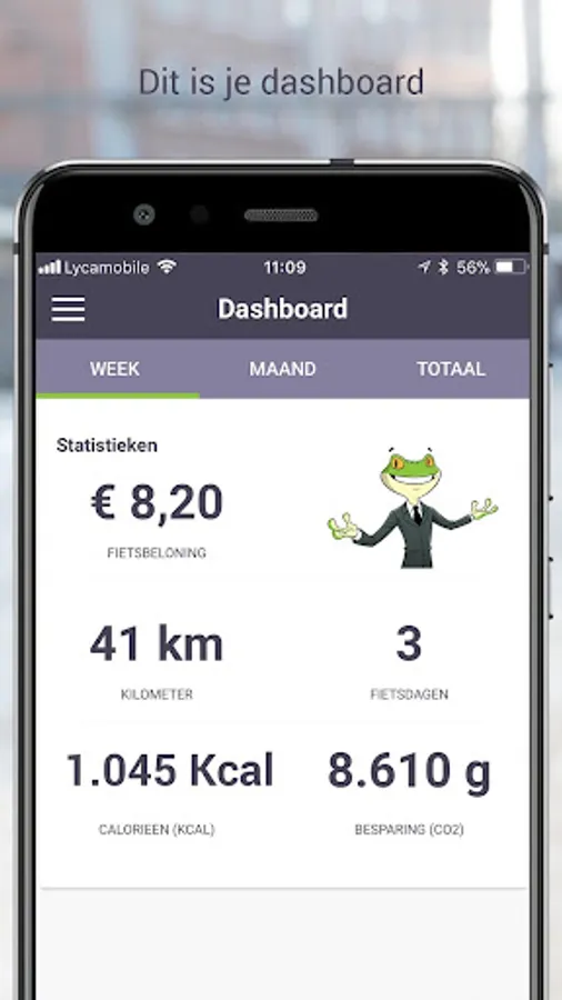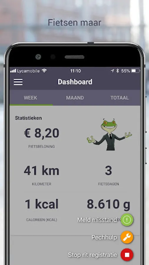 Are you a member of Fietsbelonen, you will see the amount in Euros in the dashboard you have cycled together and also the number of cycling days, number of kilometers cycled, the number of Kcal. you have burned and the CO2 reduction achieved.