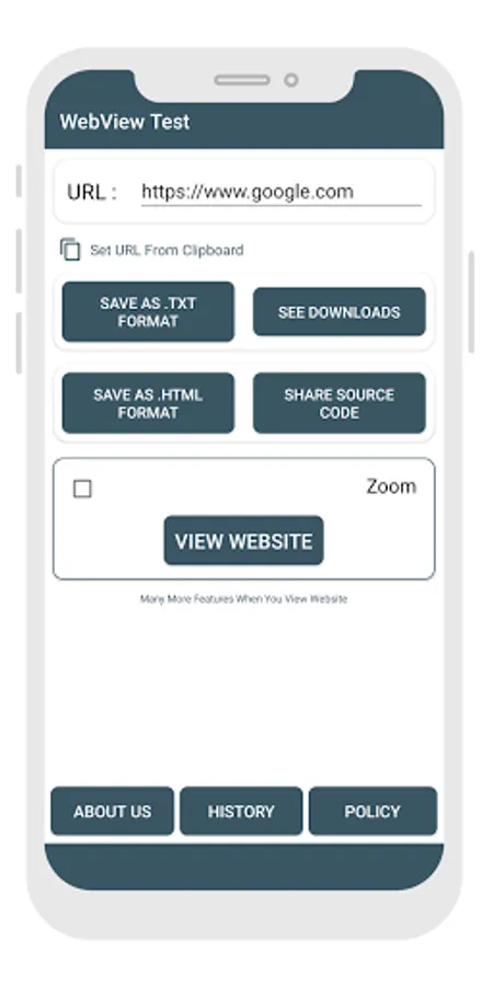- WebView App Setting Helps You To View The Source Code Of the Website You Enter.