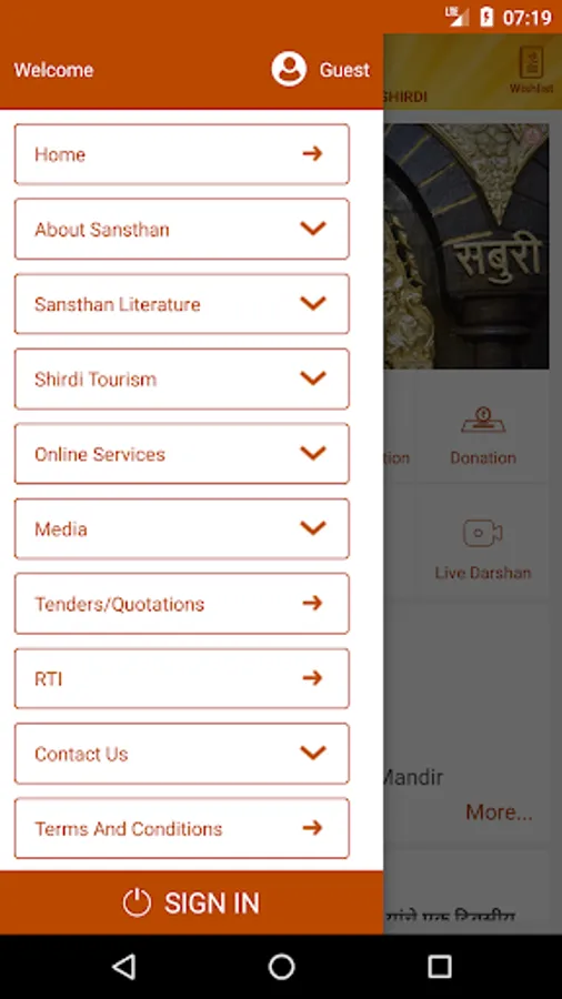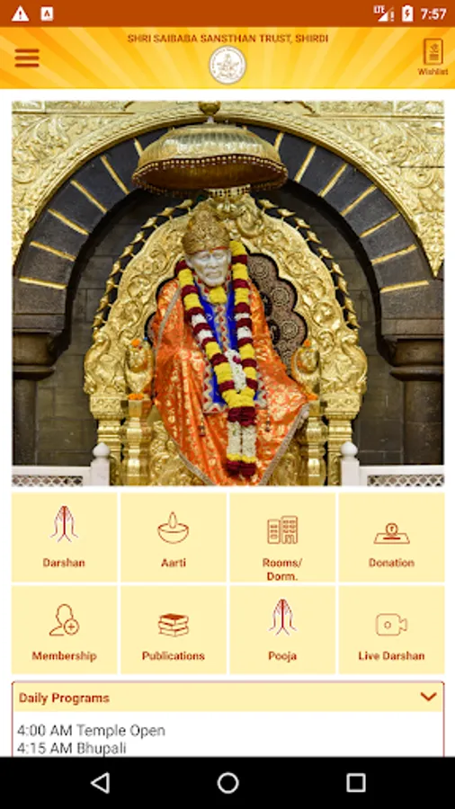 "Saibaba Shirdi" is official application by Shri Saibaba Sansthan Trust,Shirdi. Devotee can view SSST published Literature (Sai-Satcharitra, Sai leela, Aarti), avail Sansthan Online Services, Sansthan media. Devotee can take online Darshan (live) using the application.