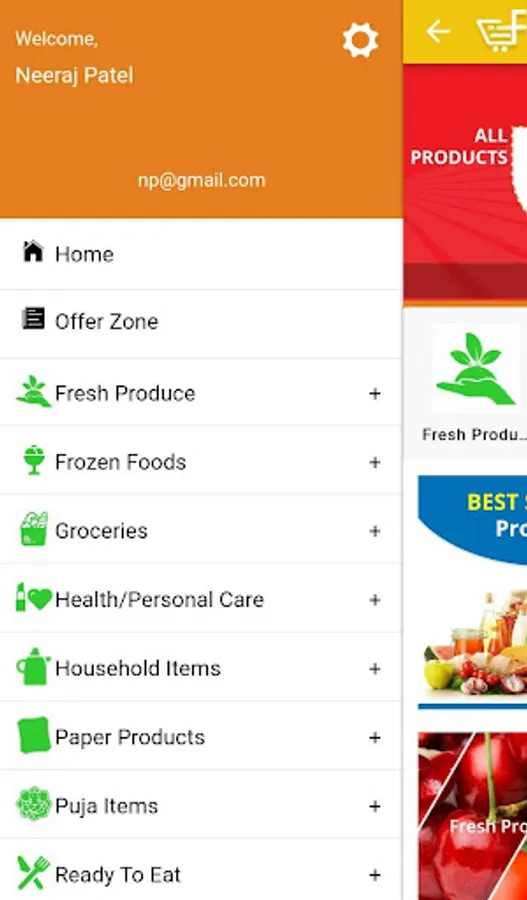 - Side menu with Offer Zone , all categories in accordion view and user account.