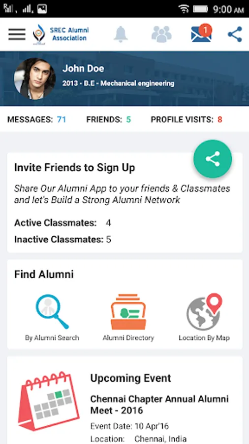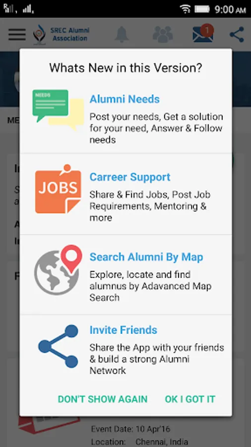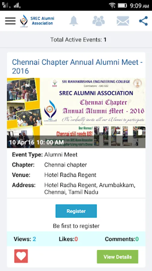 SREC Alumni Association is private social community app created exclusively for the alumni members of Sri Ramakrishna Engineering college. With this App the Alumni can find their fellow alumni, share their moments, participate in the college events and keep posted with the live activities of the Association.