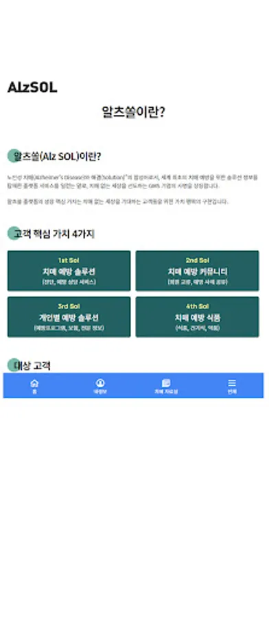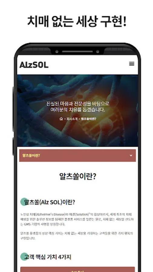 The core value of the growth of the AlzSol platform is the realization of value happiness for customers who expect a world without dementia.