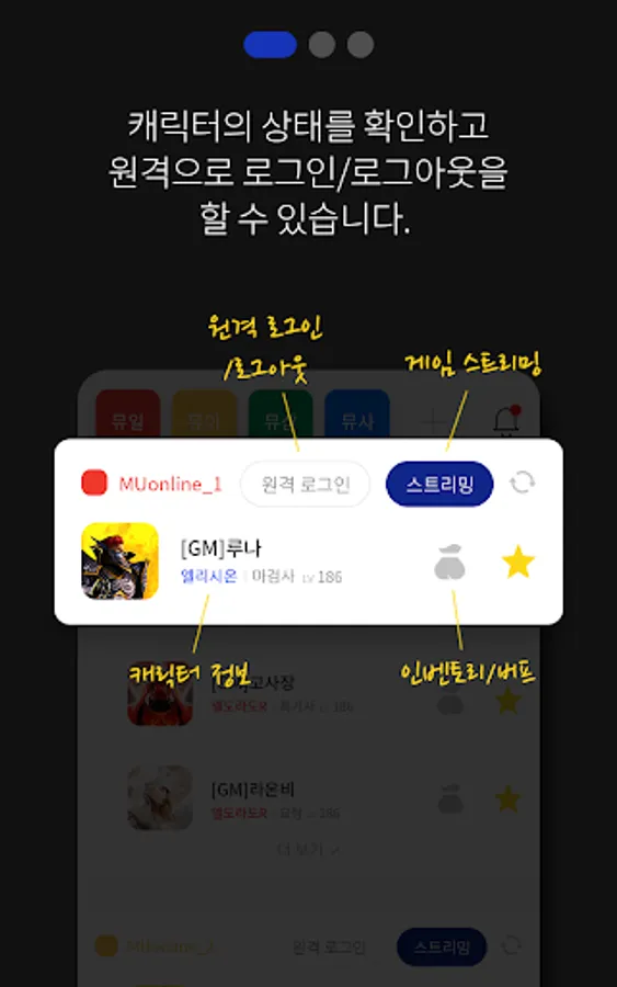 1) Check access information - You can check whether the character is connected or not, buff items in use, and inventory information.