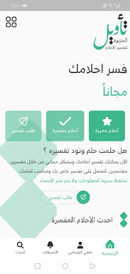 It is an application dedicated to interpreting dreams and visions, by accredited interpreters and of high quality for free. The dream will be interpreted in less than 12 hours or shorter than that.