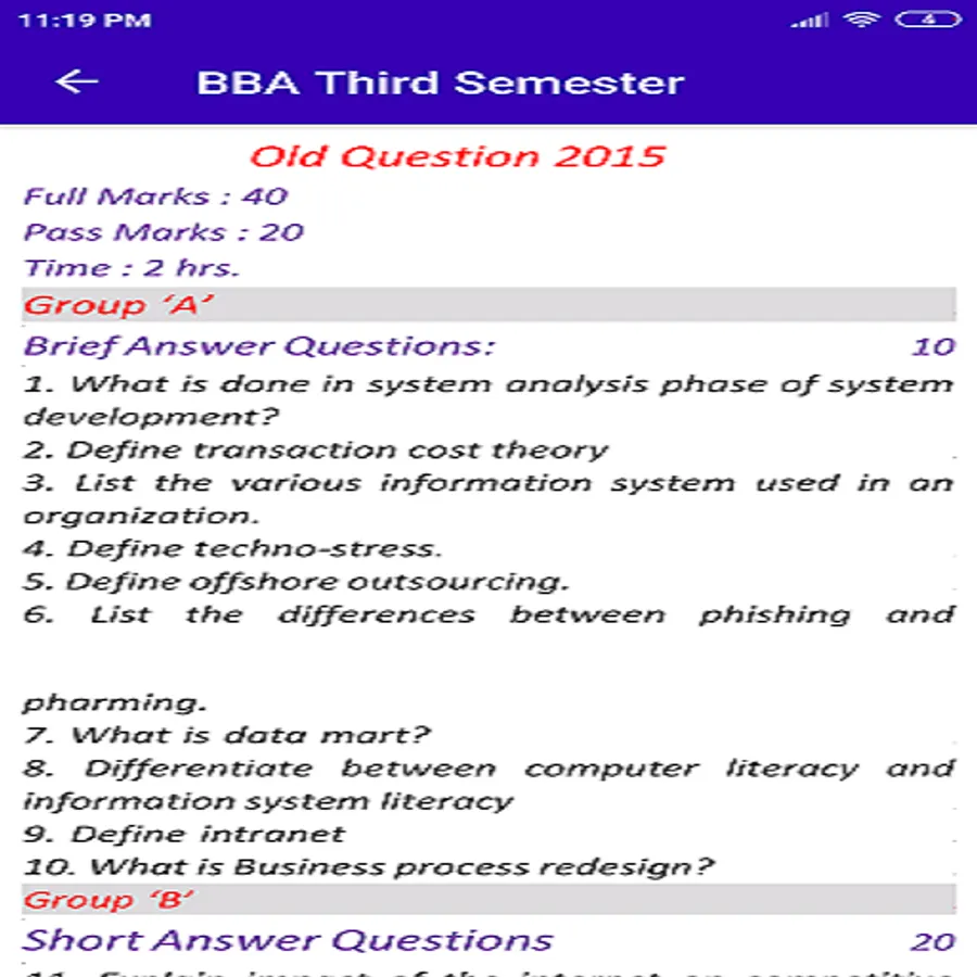 Old Questions : On this sessions students can get the old questions of the previous years which is more important for the examination points of views. Old questions of previous years is also included on this applications.