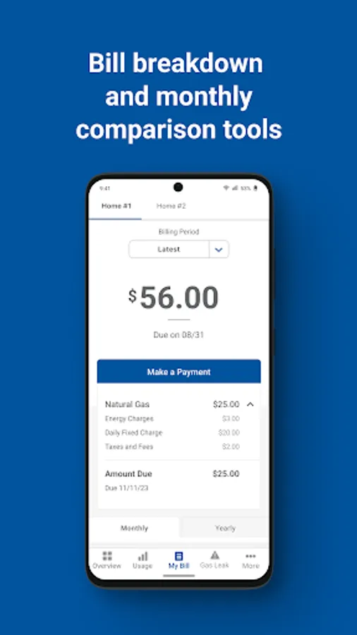 View your current bill breakdown and your bill history.