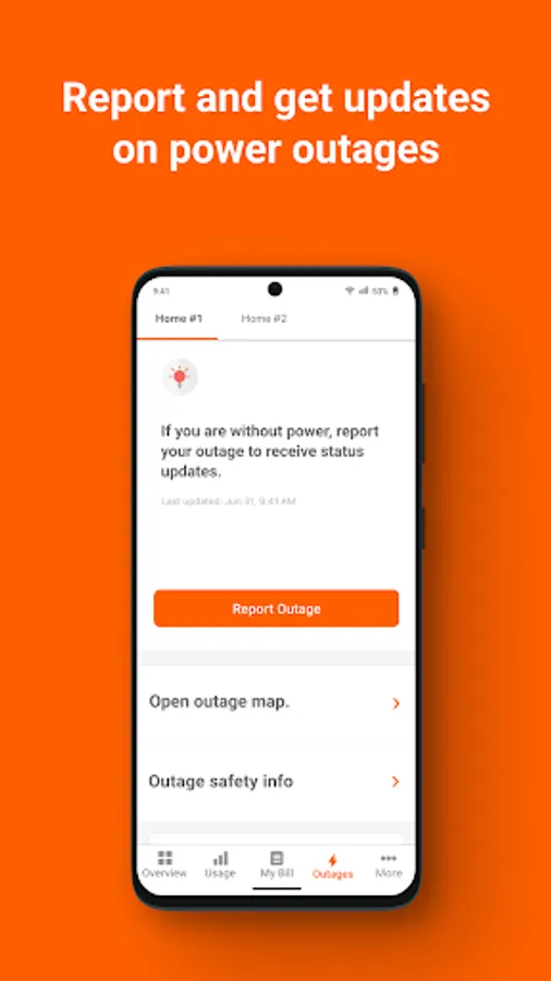 Know the estimated restoration time, cause and number of customers affected in real time.