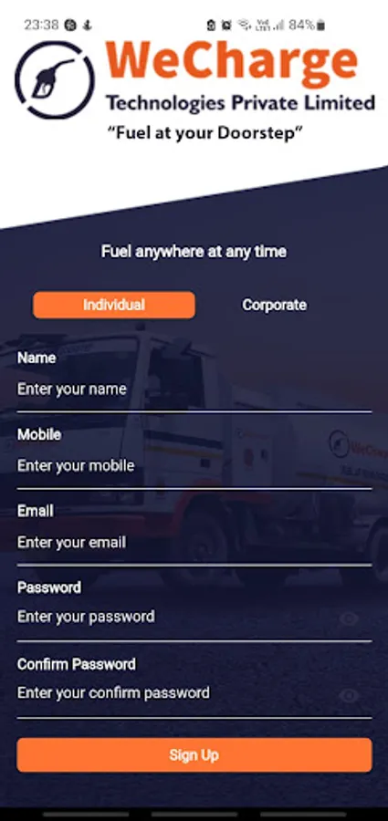 "WeCharge" is a brand of Wecharge Technologies Private Limited which is a DPIIT recognized startup incorporated in 2018 with an aim to revolutionize refueling services in India and is promoted by senior executives with years of experience in oil and gas industry.Drive by the unique technology solution, WeCharge provides Quality and Quantity assured diesel at your doorstep with utmost safety and zero wastage along with an ease of placing an order anytime anywhere you want.