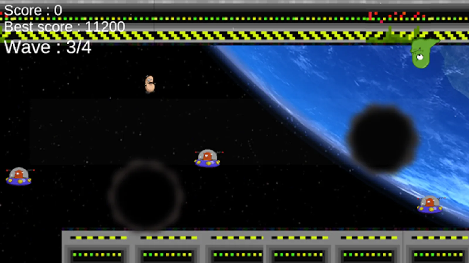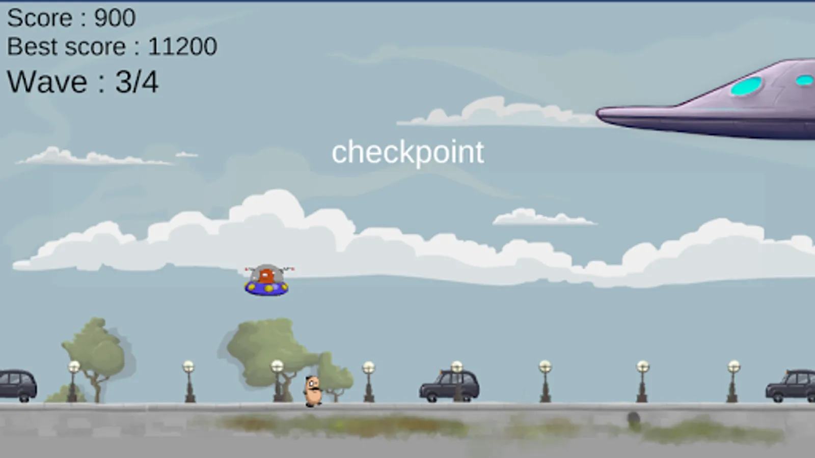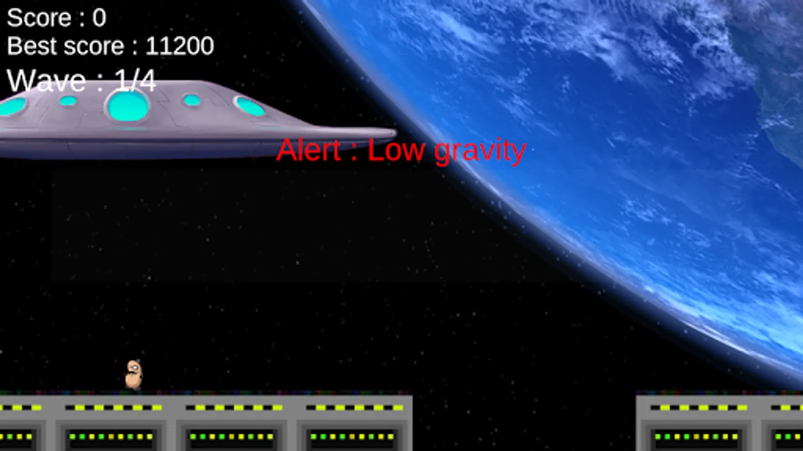 3 levels, 4 waves of enemies: save your wife who was abducted by aliens. Pursue their ship accross London, infiltrate their orbital base and if you really love your wife, plunges into a black hole to save her Enjoy: D