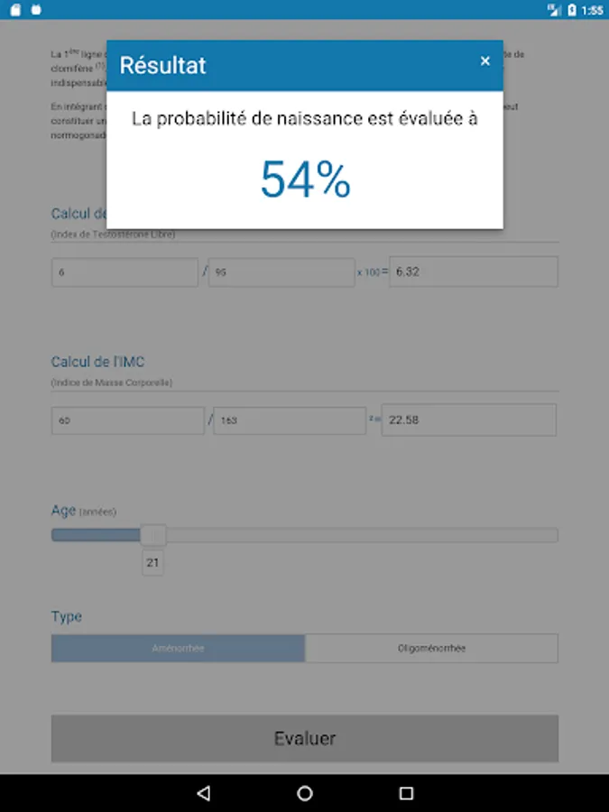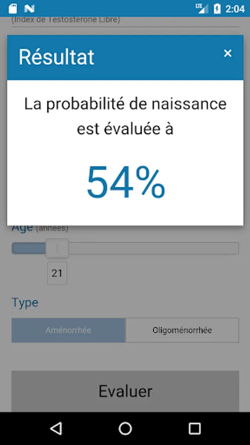 The results calculated by this application are presented for information only, and are based on probabilities with a margin of error. They are not a substitute for medical advice. Moreover, this application can not under any circumstances be used as a contraceptive method.