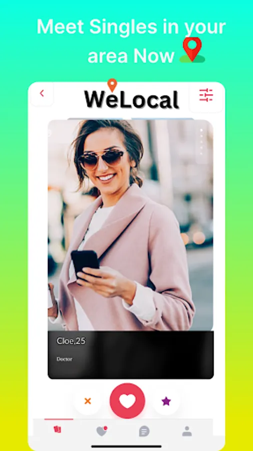 you can use our app to match, chat, flirt with singles nearby , Chat with people near you before everyone else!