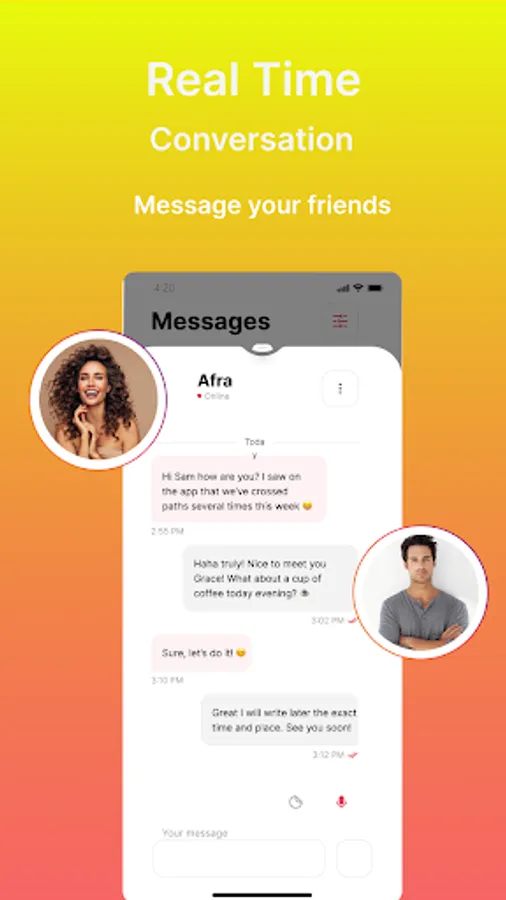 Our finding new friends app free helps you scout nearby new people and meet with them, connect with people and chat with people.