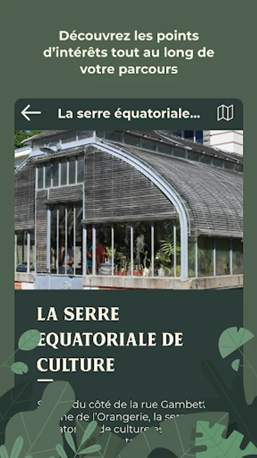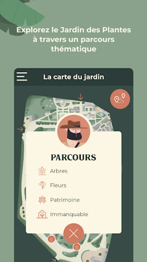 In this application, we provide you with a detailed plan of the Jardin des Plantes, with a geolocation of the rarest plants, exceptional trees, various greenhouses and all the activities and amenities of the park (monuments, reception, restaurant, merry-go-round , aviary, toilets…).