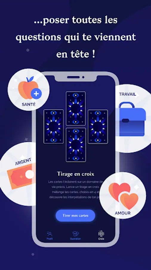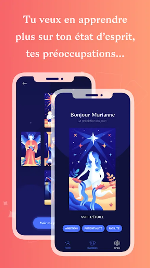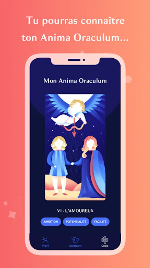 Would you like an unlimited card reading? Opt for the Premium subscription (1st month free). You benefit from the history of your card draws, as well as the "favourites" feature. You can manage your subscription directly in your settings.