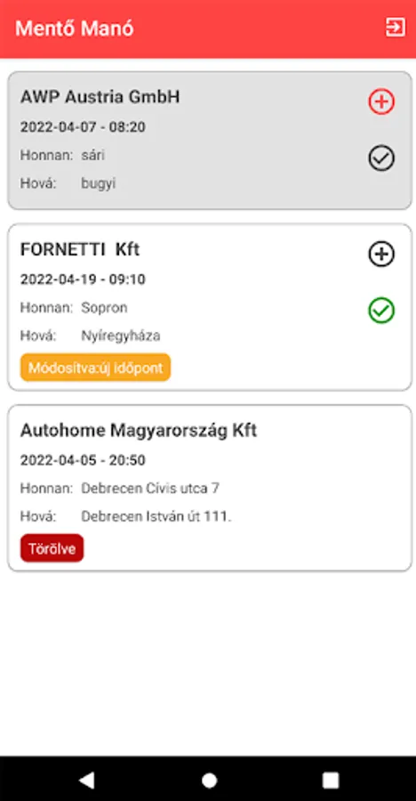 Car ambulance application for Autómentő Manó Bt. The application allows you to accept and manage the tasks received by the company.