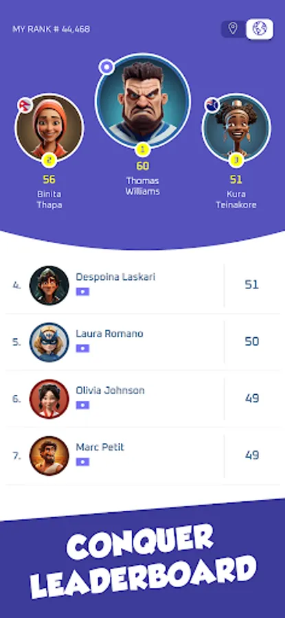Measure your progress and compare your scores with players from your country and across the globe. Can you top the charts and secure your place among the world's best? With each match, you inch closer to reaching the summit.