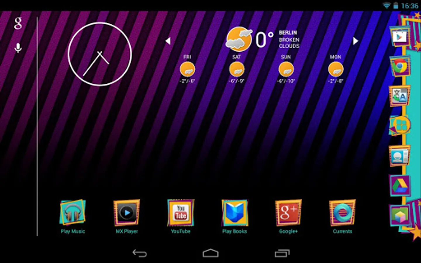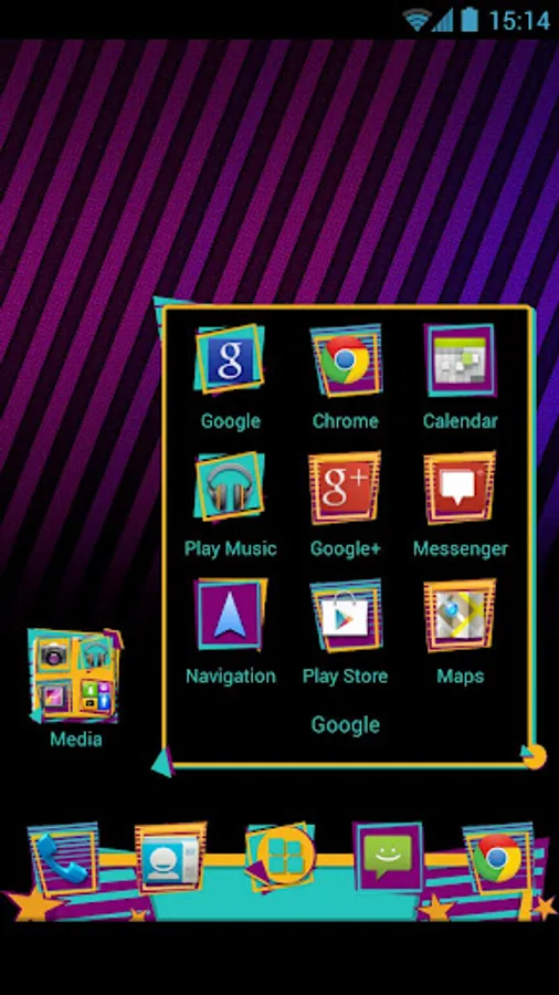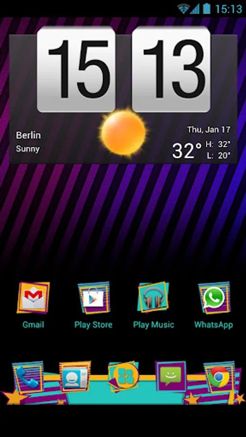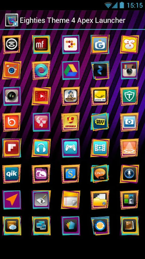 Welcome to the era of neon colors, shoulder pads and synth pop. Where men took make-up and girls wanted to have fun. Welcome to the eighties. Welcome to our new Eighties Theme 4 Apex Launcher. With this theme you get the Look & Feel of the 80's. Download Eighties Theme for the Apex Launcher and your Andoid Smarthphone shines in neon colors typical for that time.