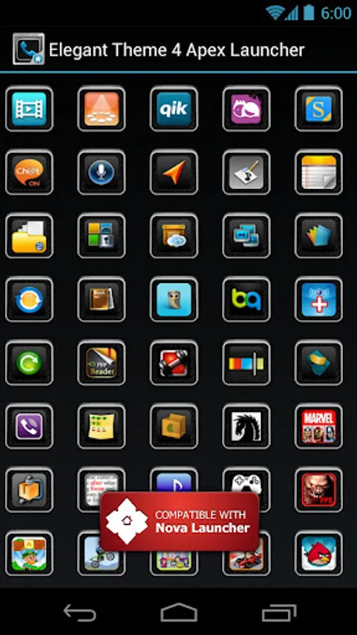 The popular Elegant theme designed by White Eye Design is now available for the new Apex Launcher! Everything has been specially adapted to this launcher. Download this apex theme and have a completely new style for your android phone and tablet.