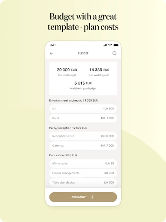 Wedding expenses can quickly add up, but with Wedsly's budget tool, you can effectively track and manage your spending. Set your total wedding budget and allocate costs to different budget items, and the app helps you stay within your budget limits. This budget tool ensures complete control over your wedding budget, allowing you to make informed decisions and prioritise your spending.