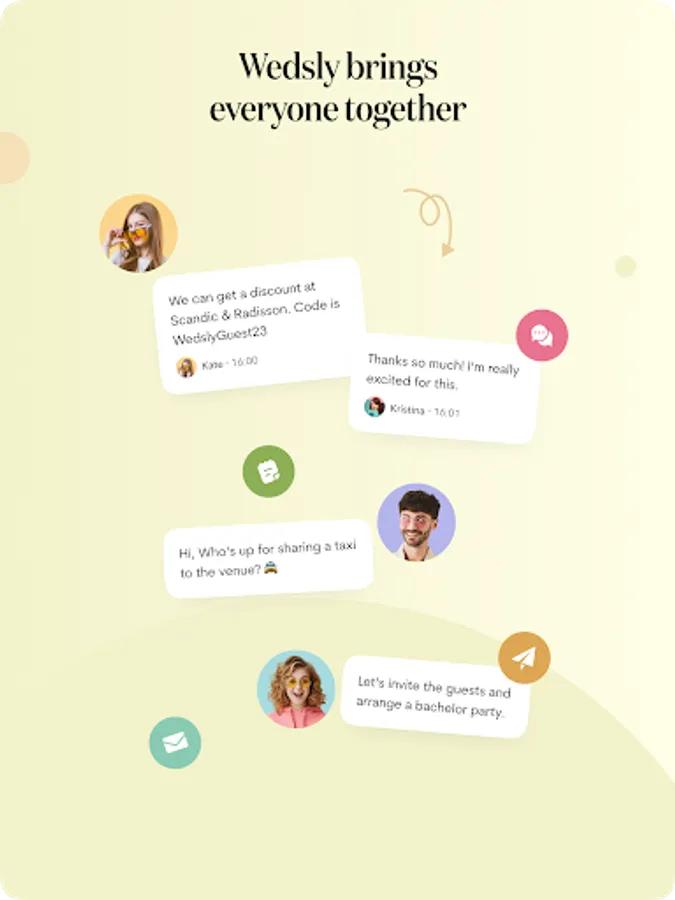Collaboration is vital when it comes to planning your dream wedding. With Wedsly's app, you and your partner can stay synchronised and work together: delegate tasks, share ideas, and communicate within the app. Enjoy a hassle-free planning experience as you coordinate and align your visions for the perfect wedding. Wedsly makes it easy for you and your partner to be on the same page throughout the process.