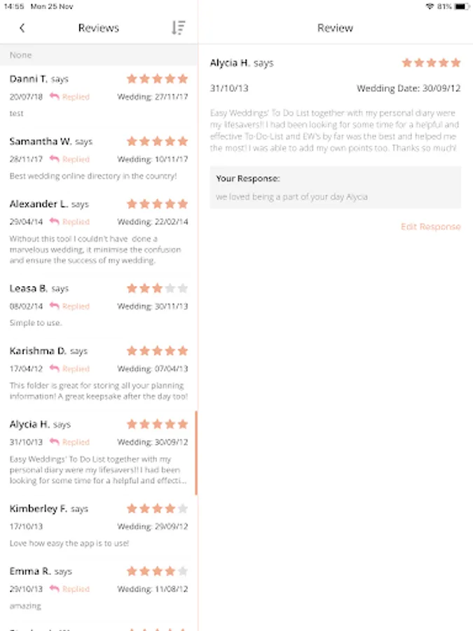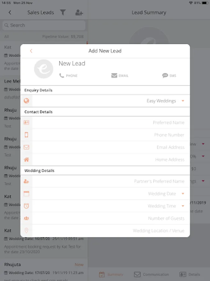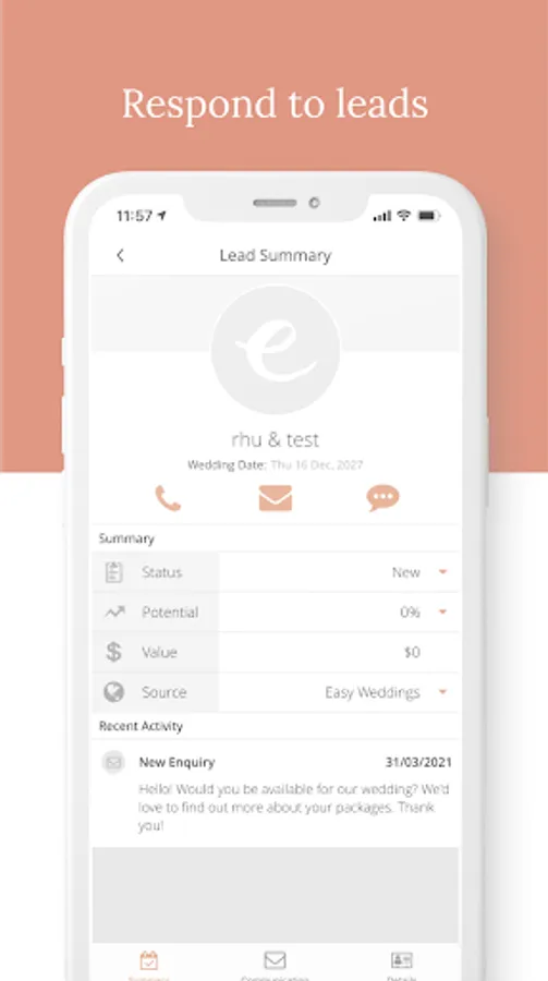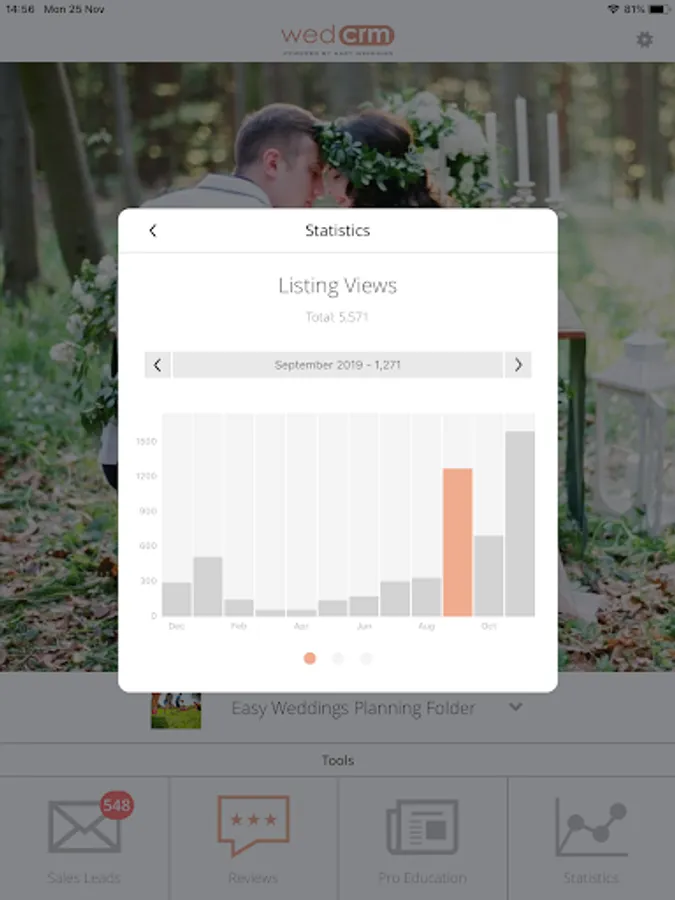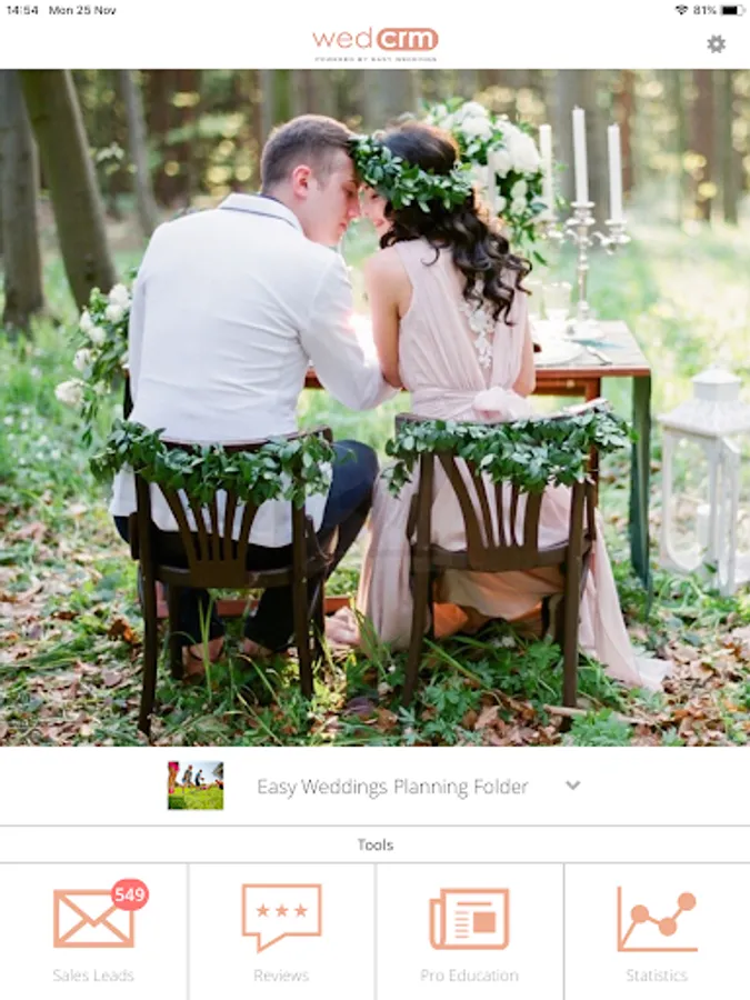 Want to give your wedding business the edge? When selling to millennials in the wedding industry, speed essential. WedCRM allows you to easily manage and respond to leads, reviews, clients, and access your Easy Weddings storefront statistics. Respond quickly to prospects, and instantly sync with your Easy Weddings storefront for access wherever you go. WedCRM is the key tool for any Australian or UK wedding professional.