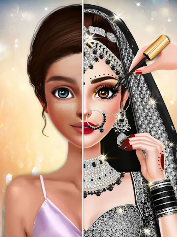 Looking for fashion games or wedding games want to be a wedding dress up & makeup stylist? Come up with fashion wedding ideas in the best wedding, dress-up, and makeover games. Fashion show of your creativity by designing dress up and makeover brides in fashion dress up wedding games for India and girls like Indian wedding girls games and doll game 2023. Fashion show new game with an Indian culture based fashion wedding dress-up games for Indian designer skills to make these brides look gorgeous and royal for their big day in Indian wedding fashion dress up and fashion stylist wedding games for girls. Dress up the fashion doll in a magical makeover look by using elegant and fancy dress up with a huge variety of stylist princess dresses, and other sparkly accessories in wedding games for girls. You are working as a wedding planner in this wedding designer game to make every wedding event more creative, and make the bride in hot dress look beautiful and adorable in her indian wedding games because every bride wants to look like a princess on her wedding day with girls games new makeup items. Help her to find the perfect wedding dress in India fashion wedding dress up & makeup games for girls.