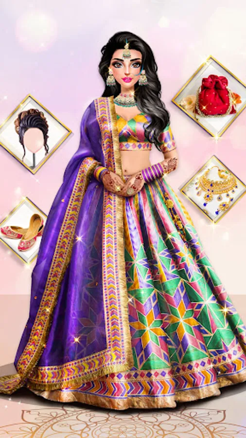 Put the favorite style of Henna on the bride's hands and choose the dress of her own choice in games for girls. Make a bride more beautiful by choosing hair color, an attractive lipstick color, handbags, and much more. Give your bride a glowing look with a beautiful hairstyle. Make her look more stunning with a lot of accessories like indian necklace, earring, heels and much more. The Indian bride is all ready to attend the wedding day. But what about contests? Take another Indian bride and give her a new Indian wedding fashion game. Try to make your bride look beautiful in bridal wedding games.