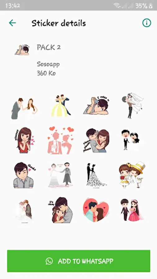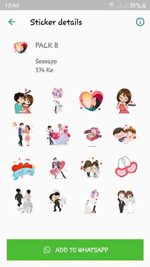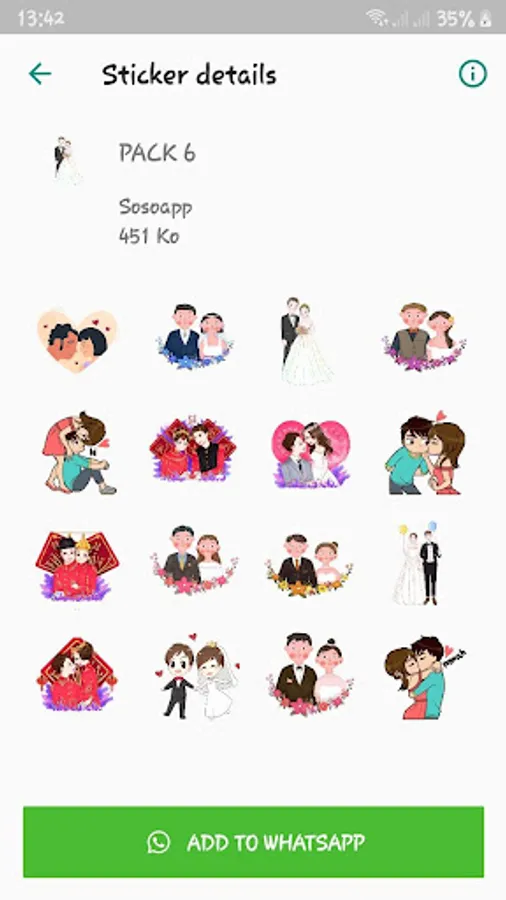 "WAStickerApp: Wedding stickers for WhatsApp" is a free application that offers beautiful stickers for married people chatting with their husband or wife. This application was created to make the conversation between lovers more beautiful, more meaningful and more fun.