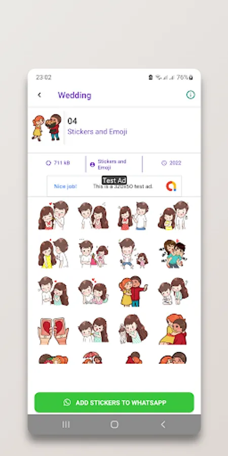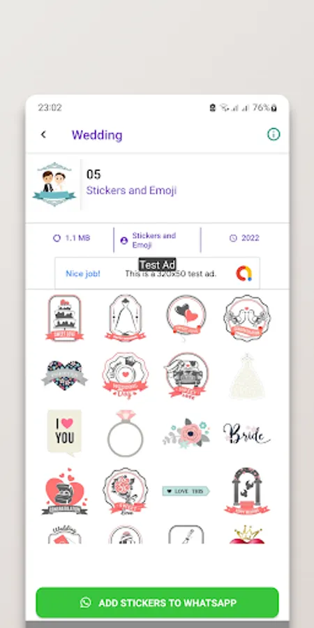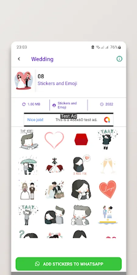 "WAStickerApp: Wedding stickers for WhatsApp" is a free application that offers beautiful stickers for married people chatting with their husband or wife. This application was created to make the conversation between lovers more beautiful, more meaningful and more fun.