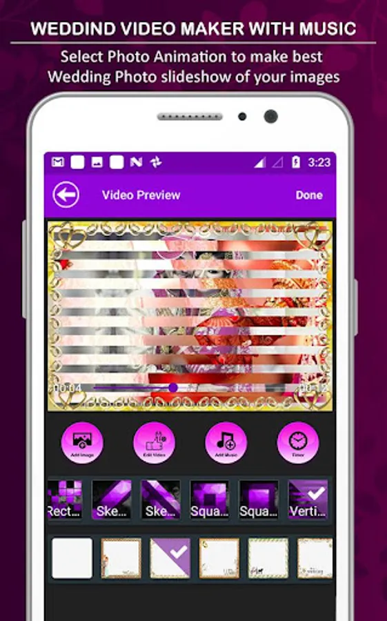 ♠ App is related to image to video converter photo slideshow which helps you to create best Wedding Wishes videos for your loving ones from photos and wedding music with wedding video themes.