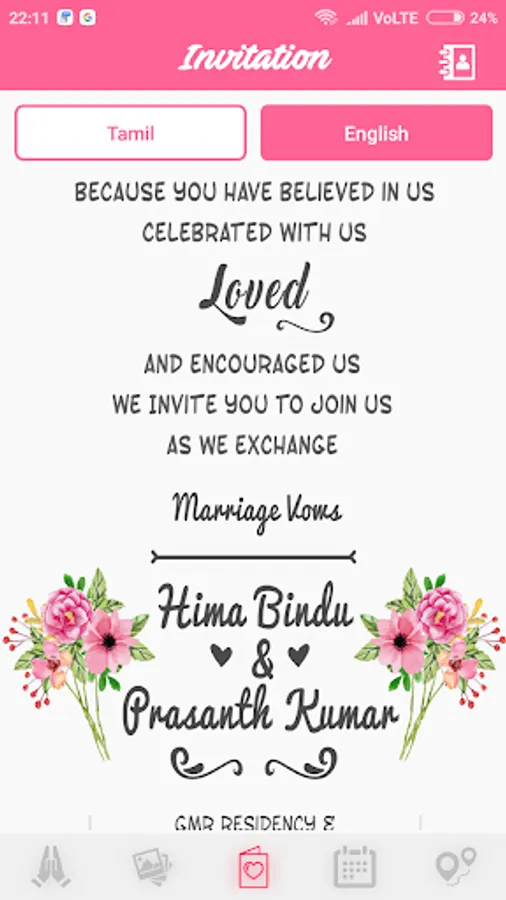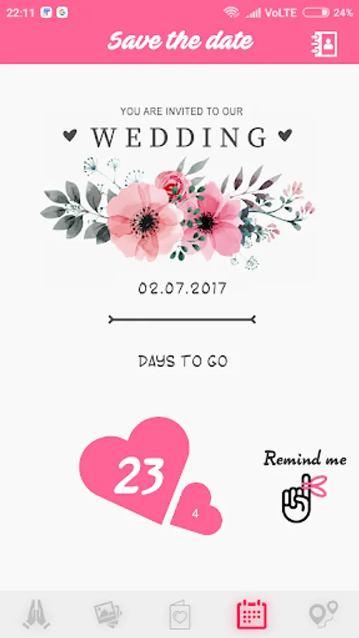 A completely customised and personalised wedding invite app with multi-lingual support, photo gallery of bride & groom, reminder and maps to ensure a hassle free and a comfortable journey for the guest.
