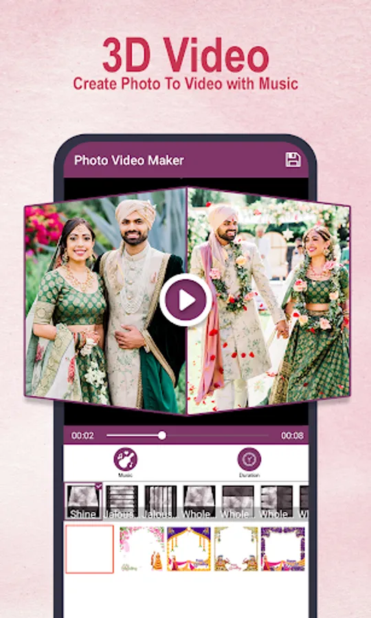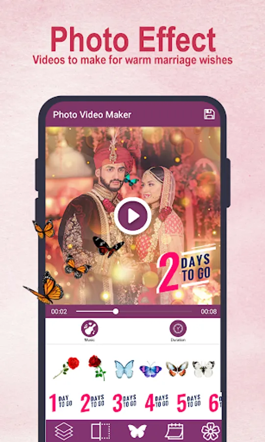 Create a beautiful and personalized video tribute to your love story with our video editing app. Choose your favorite photos, add music, text, and special effects to create a unique and heartfelt video that captures the essence of your journey together.
