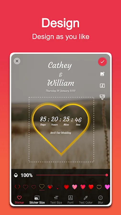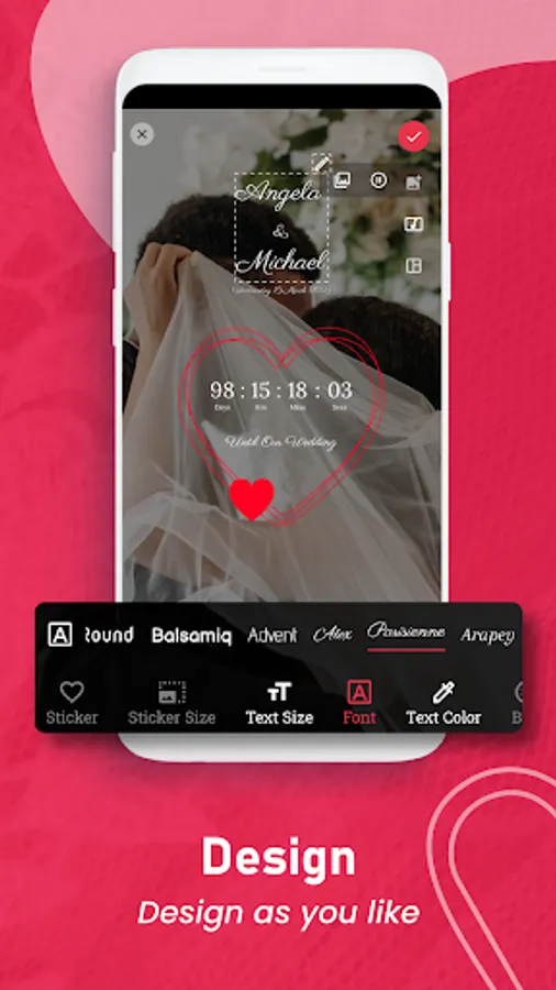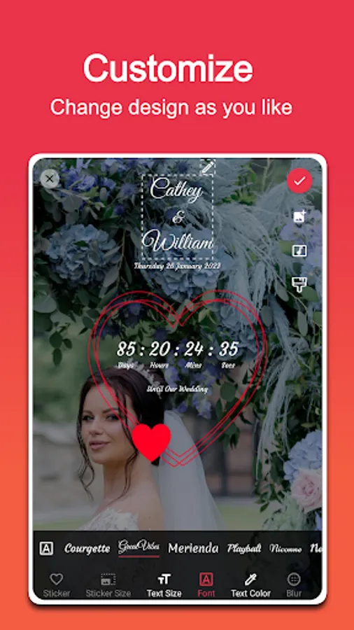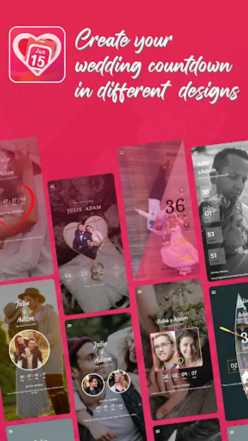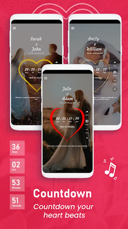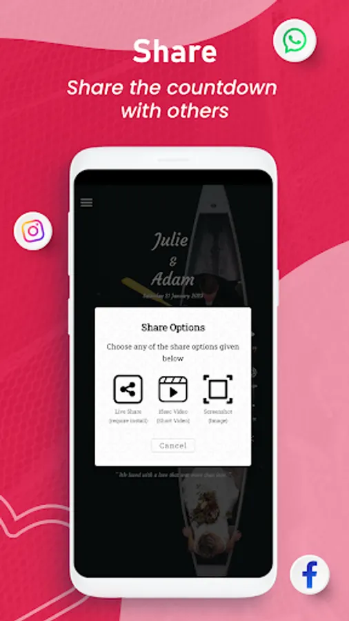 + Share your beautifully designed wedding countdown as Image or Video or App through social media platform.