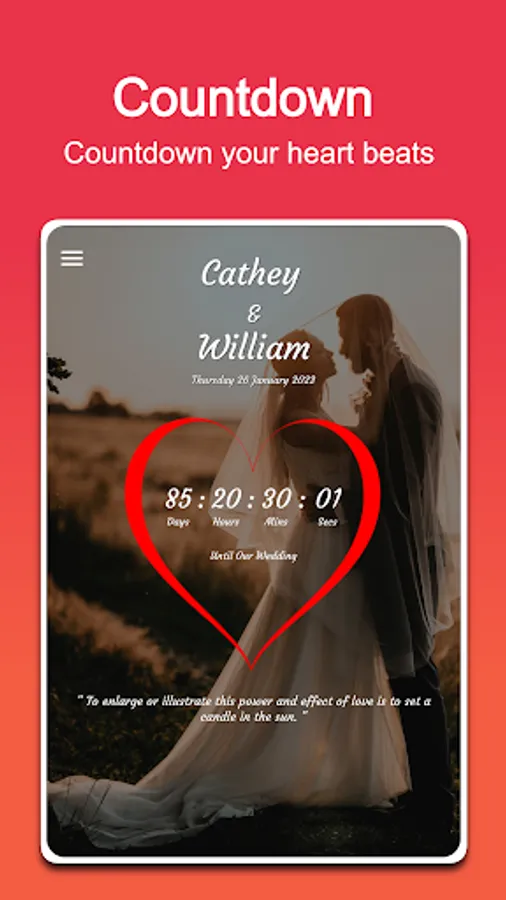 In addition, choose whether you want to receive daily love quotes(from over 200+ collections), so that you always keep in mind that something beautiful is one less day away.