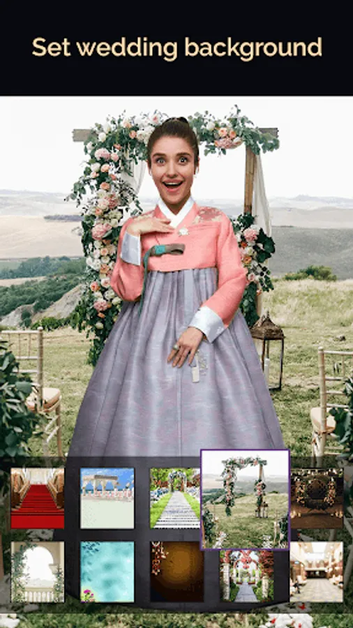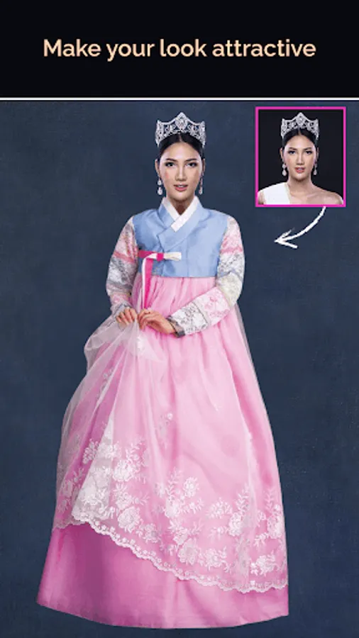 It is easy to create the Hanbok Dress Photo Montage and share it with friends, family, and colleagues via social media platforms. Korean Hanbok Photo Editor app gives you an amazing collection of hanbok wedding dresses.