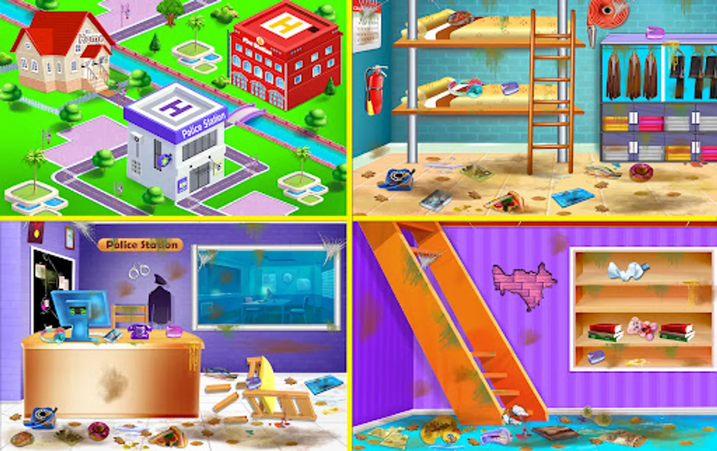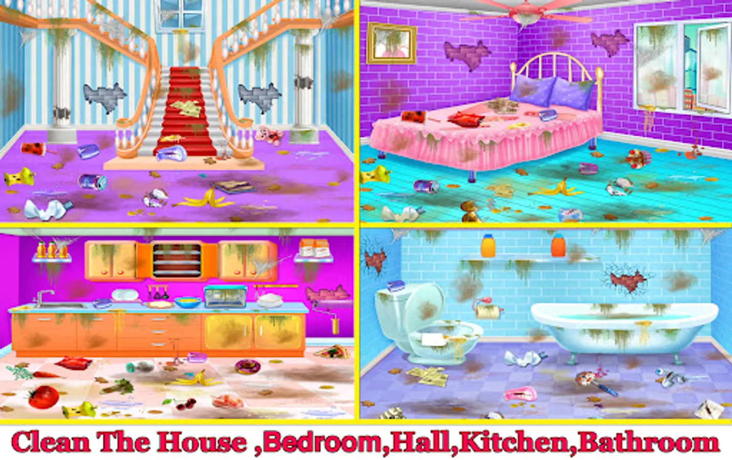 House Cleaning-Home Design Game right now and start cleaning a city, some of the best city cleaning games for free you’ve ever seen! Play this clean up game with many different cleaning activities such as first of all place all messy things at proper place and throw rubbish items in to dustbin. Then cleaning activity will start with removing spider nets, remove dust from walls by using water spray and towel. And at last clean floor by mop. This cleaning game includes rearrange the furniture, jigsaw puzzles, place toys and other things back on their place, restore walls etc.