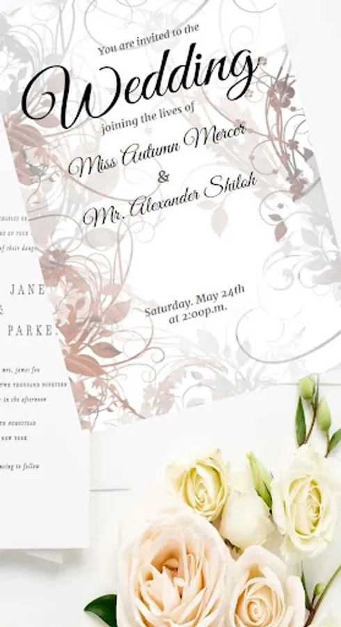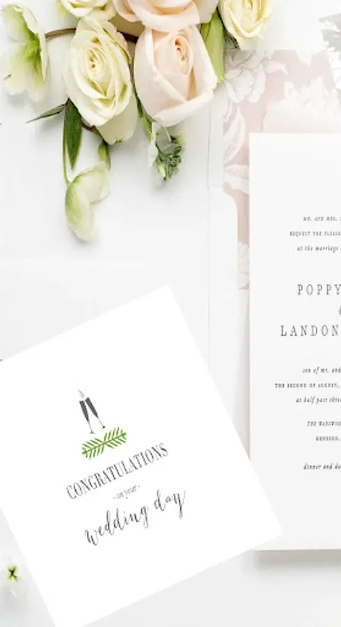 This wedding invitation editing app is very simple and easy to use. You can make your own wedding invitation with pictures in just a few easy steps. After you install this wedding invitation editor on your phone, choose a wedding card background. Write a wedding text message, choose font, text style and color. Add marriage stickers and make your card even more special. Save your marriage invitation card to your device or send it to everyone you want to see at your wedding.