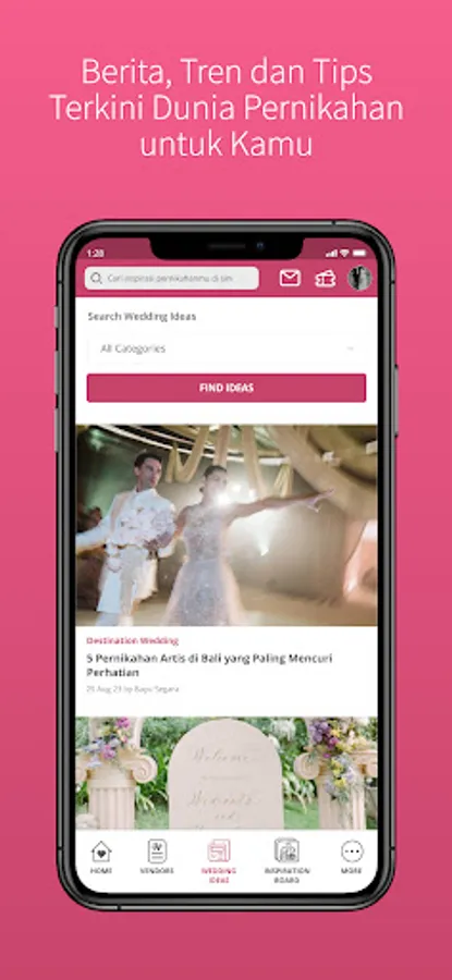 Weddingku app provides you tools and comprehensive information to find the most suitable wedding vendors, tons of inspiration, and vibrant ideas to make your dream wedding come true.