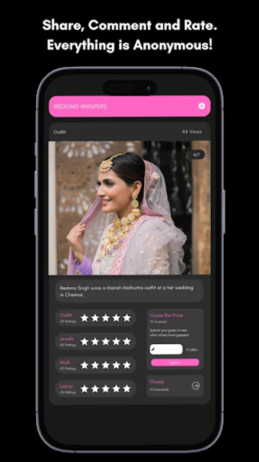 1. Anonymous Discussions: Engage in candid and anonymous discussions about the outfits, jewelry, and overall aesthetics of Indian weddings. Share your thoughts, compliments, and tips with fellow users without revealing your identity.
