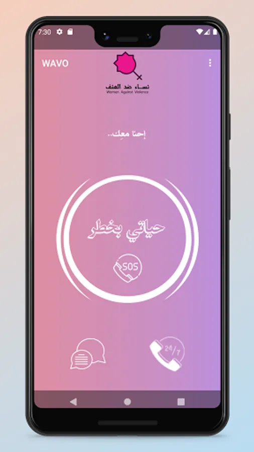 تطبيق WAVO عبارة عن مساحة آمنة داعمة للنساء والفتيات العربيات اللواتي يتعرضن للعنف على أشكاله (الجسدي، النفسي، الكلامي ،الاقتصادي،الاجتماعي والجنسي).