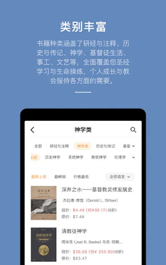 The Book app covers many high-quality and licensed Chinese Christian Books.