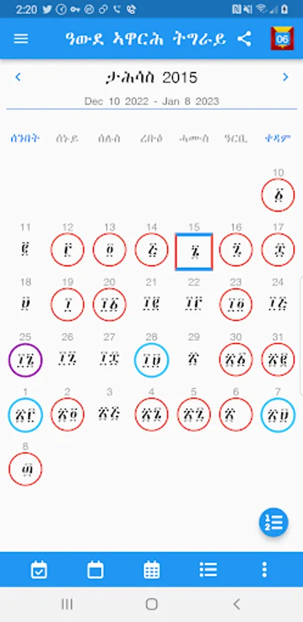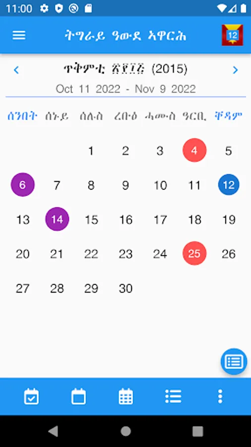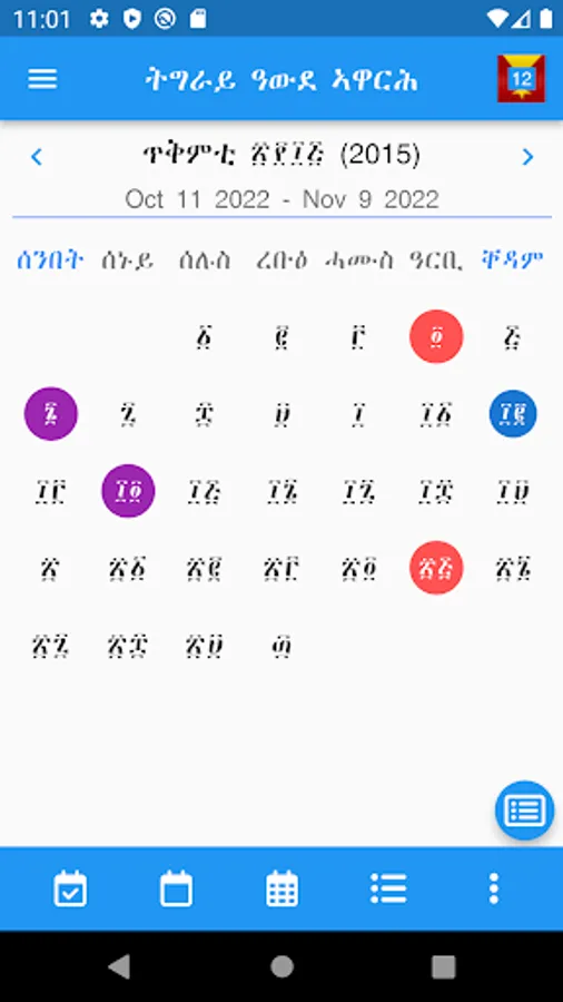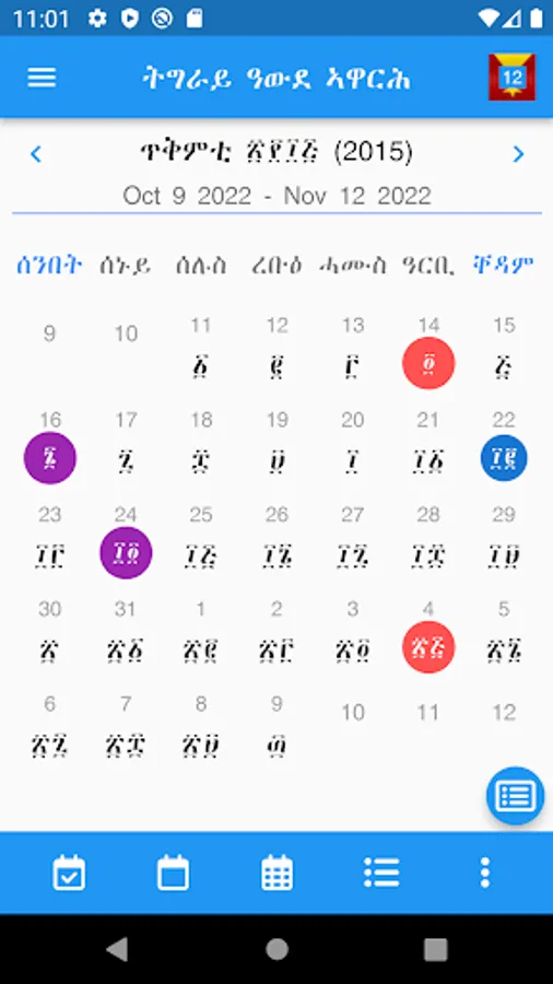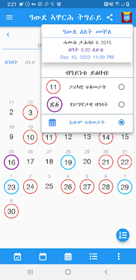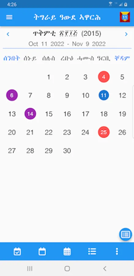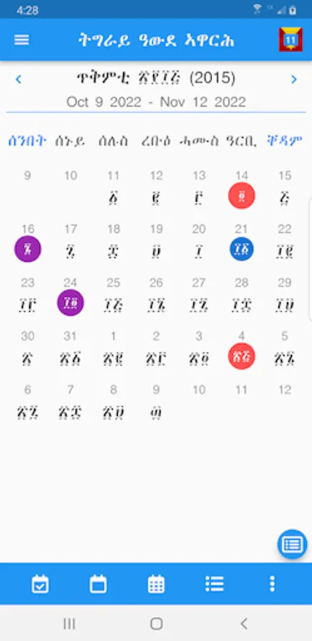 - Show Only Tigray Calendar Days,