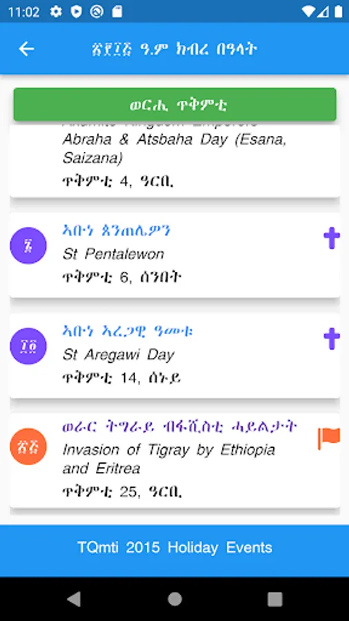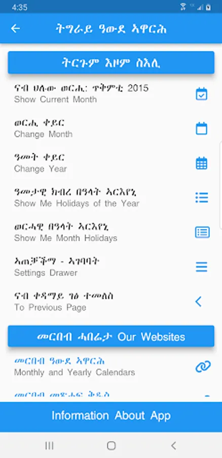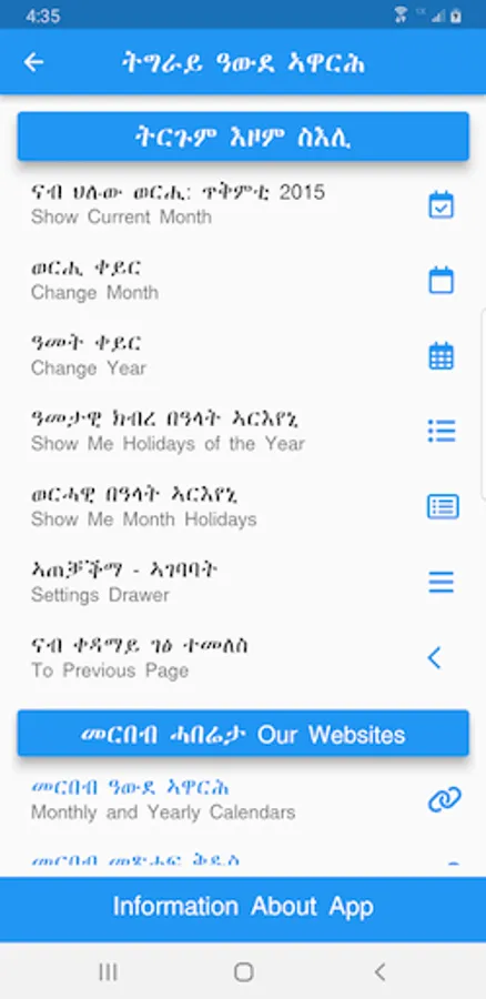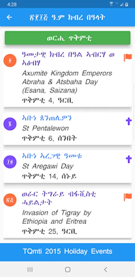 WongelAdvocate.com, WediBerhe.com, Bible Apps in Geez, Tigrigna, Amharic, and this Tigray Calendar app - apps for iOS and Android - are products of The Tigray Project. We are dedicated to distribute apps freely in electronic formats.