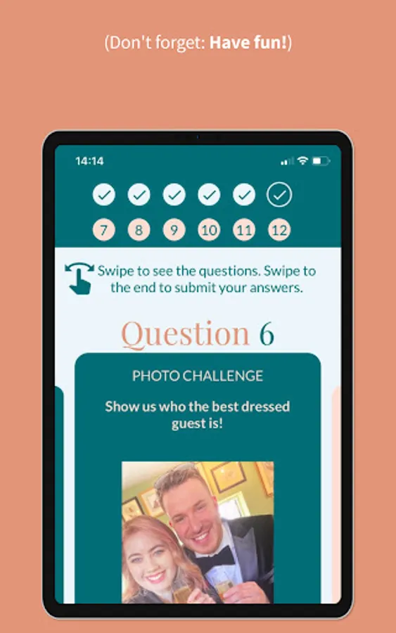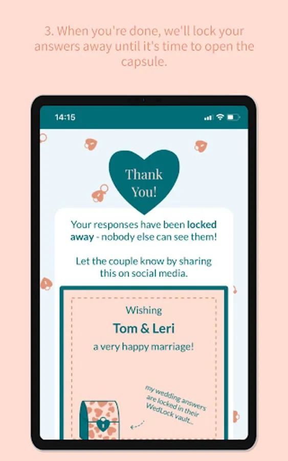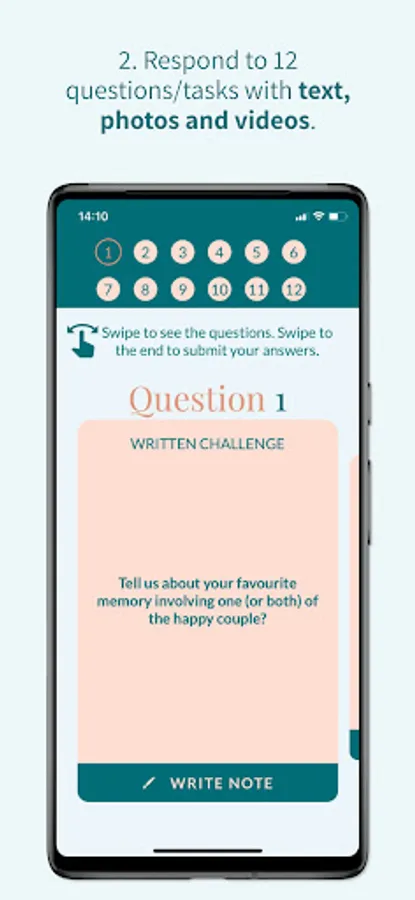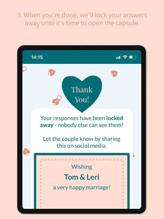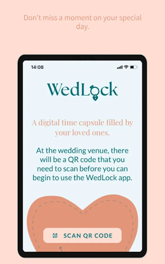 Newlyweds are often left overwhelmed after their wedding; drowning in a sea of photos and videos of their special day. At WedLock, we're digitising the beloved time capsule to give couples something to look forward to after their wedding. Guests simply scan a QR code at your wedding venue with our smartphone app and are greeted with 12 wedding-related prompts to answer with a photo, video or message.