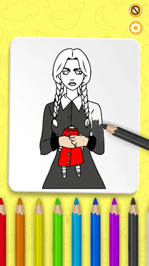 De-stress and improve your creativity by drawing and coloring these Wednesday Addams coloring game.
